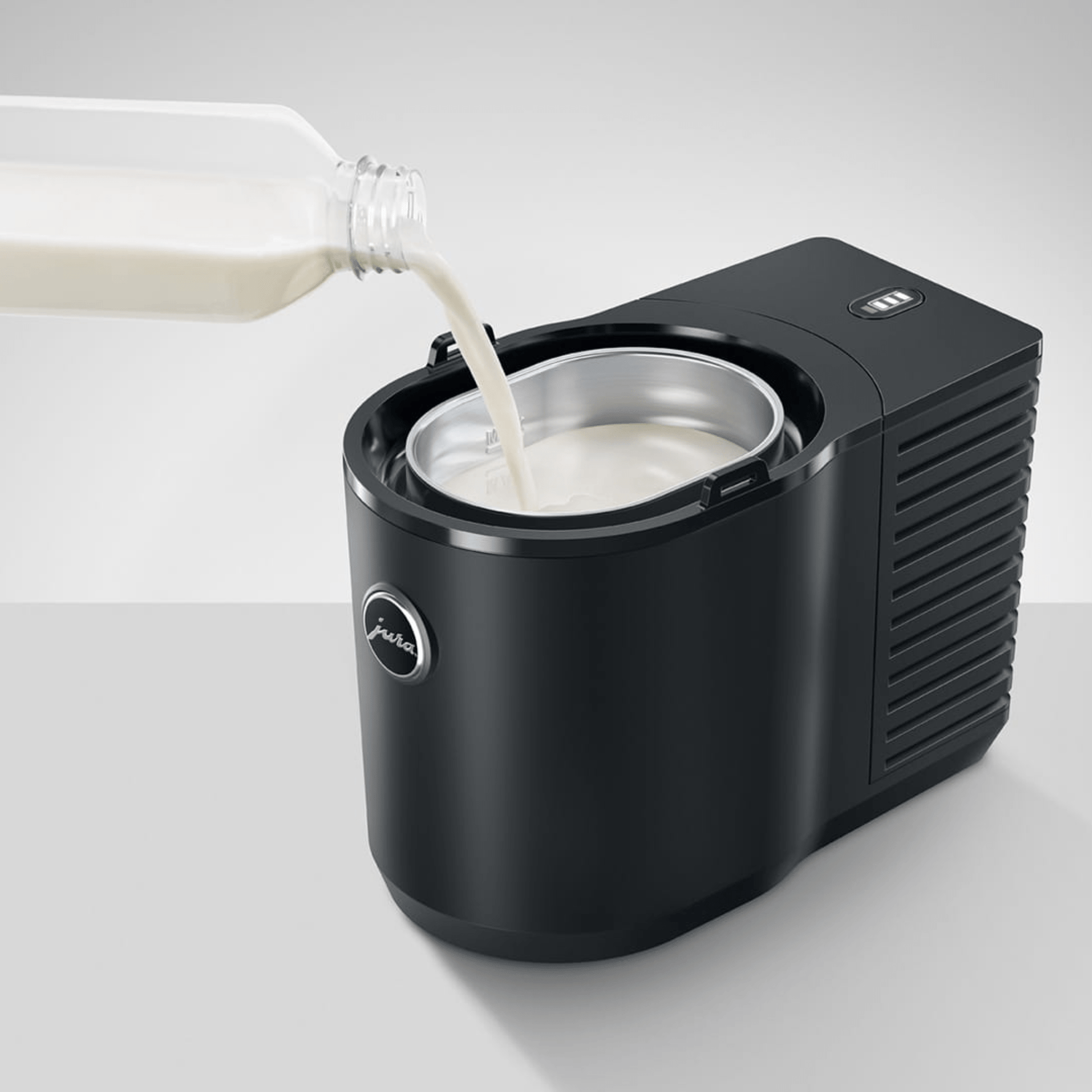 - Design: Featuring JURA's signature design, this milk cooler combines premium materials with meticulous craftsmanship. Its 1.5 mm thick brushed stainless steel lid includes an integrated locking mechanism, ensuring secure and safe milk storage.
